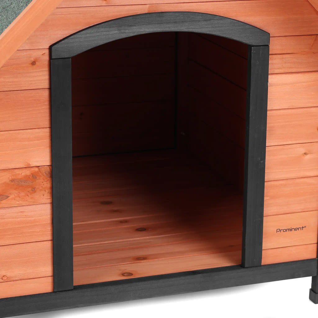 Stylowa i trwała buda dla psa PROMINENT MIKE wykonana z drewna jodłowego o wymiarach 82 x 99 x 86 cm. Dach z gontów bitumicznych chroni przed deszczem i słońcem. Pełny opis ▼