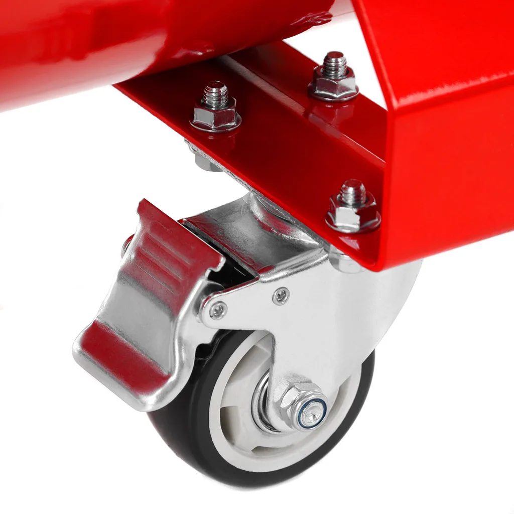 Maszyna jest wyposażona w duży zbiornik o pojemności 100 litrów, co pozwala na pracę z większą objętością powietrza i stabilnym ciśnieniem do 8 barów. Kompresor jest zbudowany na solidnym podwoziu z kołami dla łatwej obsługi, przednie koła są również wyposażone w hamulec dla większej stabilności.