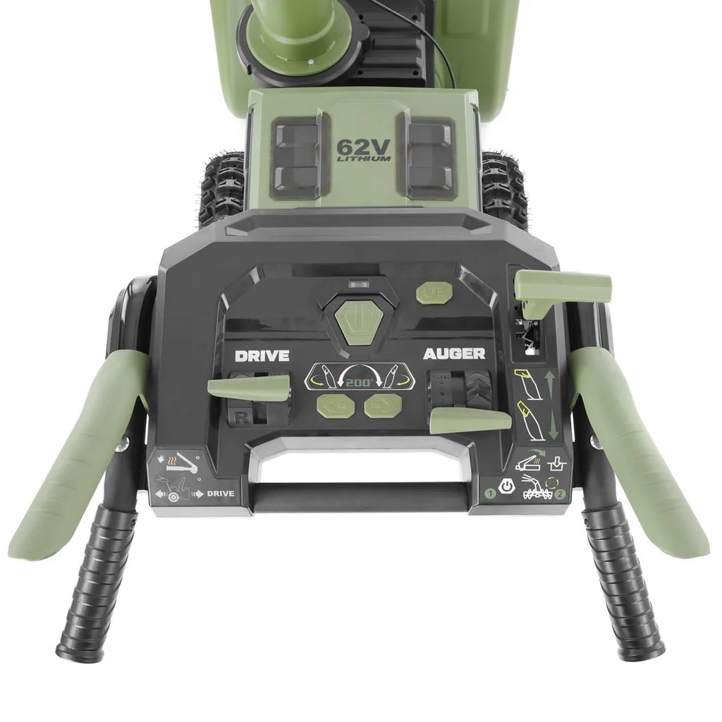 Elektroniczny napęd z regulowaną prędkością jazdy do przodu w zakresie 1,2–4,2 km/h i do tyłu w zakresie 1,8 km/h zapewnia łatwą obsługę nawet na zamarzniętych nawierzchniach. Regulowany komin o zakresie 200° pozwala na precyzyjne kierowanie wyrzutem śniegu na odległość do 15 metrów. Oświetlenie LED zwiększa bezpieczeństwo i komfort pracy w warunkach ograniczonej widoczności. Masa całkowita 72 kg podkreśla stabilność konstrukcji i łatwość obsługi.