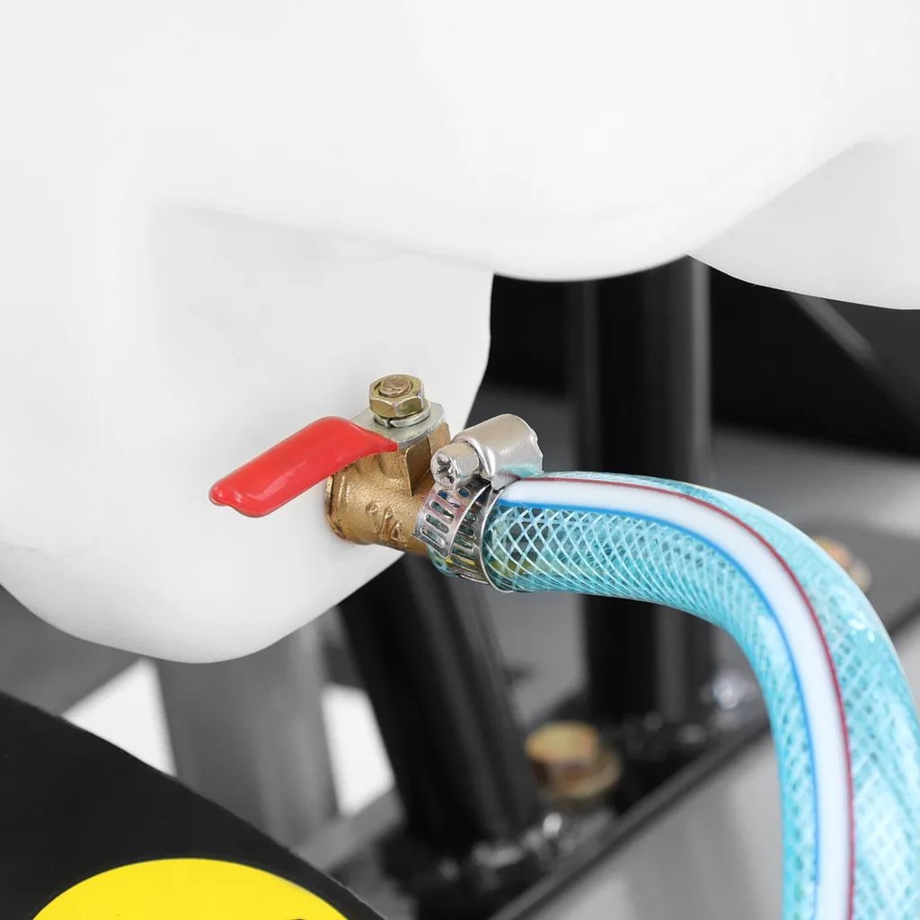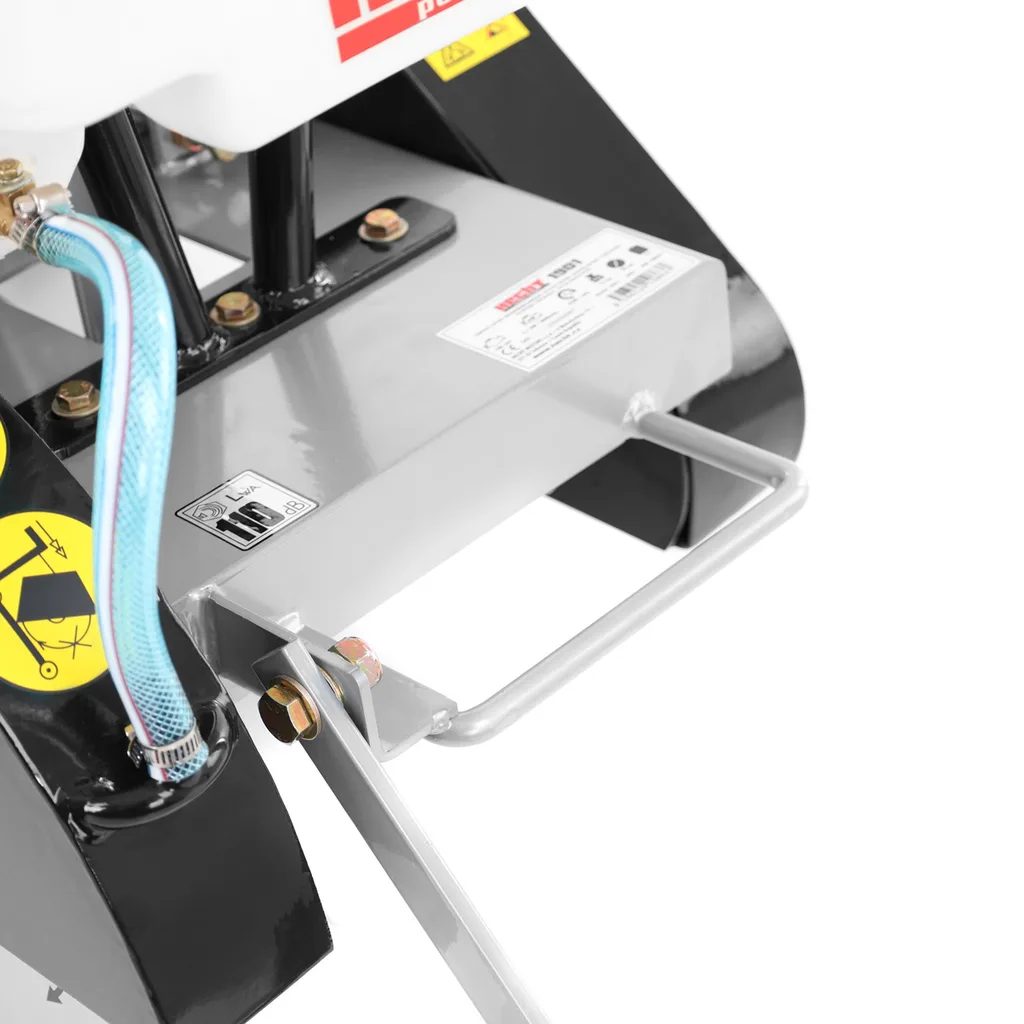 Maszyna jest zbudowana na solidnym metalowym podwoziu, co gwarantuje długą żywotność nawet przy codziennym użytkowaniu. Ostrze jest chłodzone 12-litrowym zbiornikiem na wodę, co zapobiega przegrzaniu ostrza i minimalizuje kurz podczas cięcia.