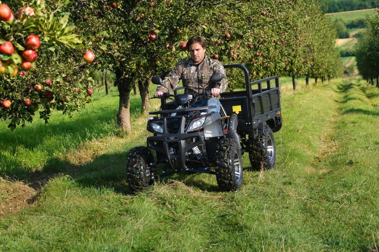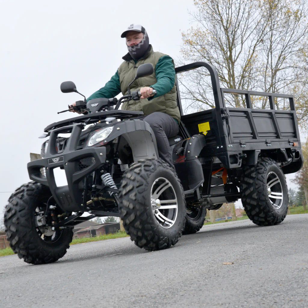 Jedną z głównych zalet czterokołowca HECHT FARMIS jest przestronna przestrzeń ładunkowa o wymiarach zewnętrznych 150 x 110 x 43 cm, co ułatwia transport ciężkich ładunków. Zabudowa jest nie tylko pojemna, ale także składana, co ułatwia załadunek i rozładunek. Niezależnie od tego, czy potrzebujesz przewieźć materiały budowlane, plony, czy nawet paszę dla zwierząt, FARMIS ułatwi Ci pracę.