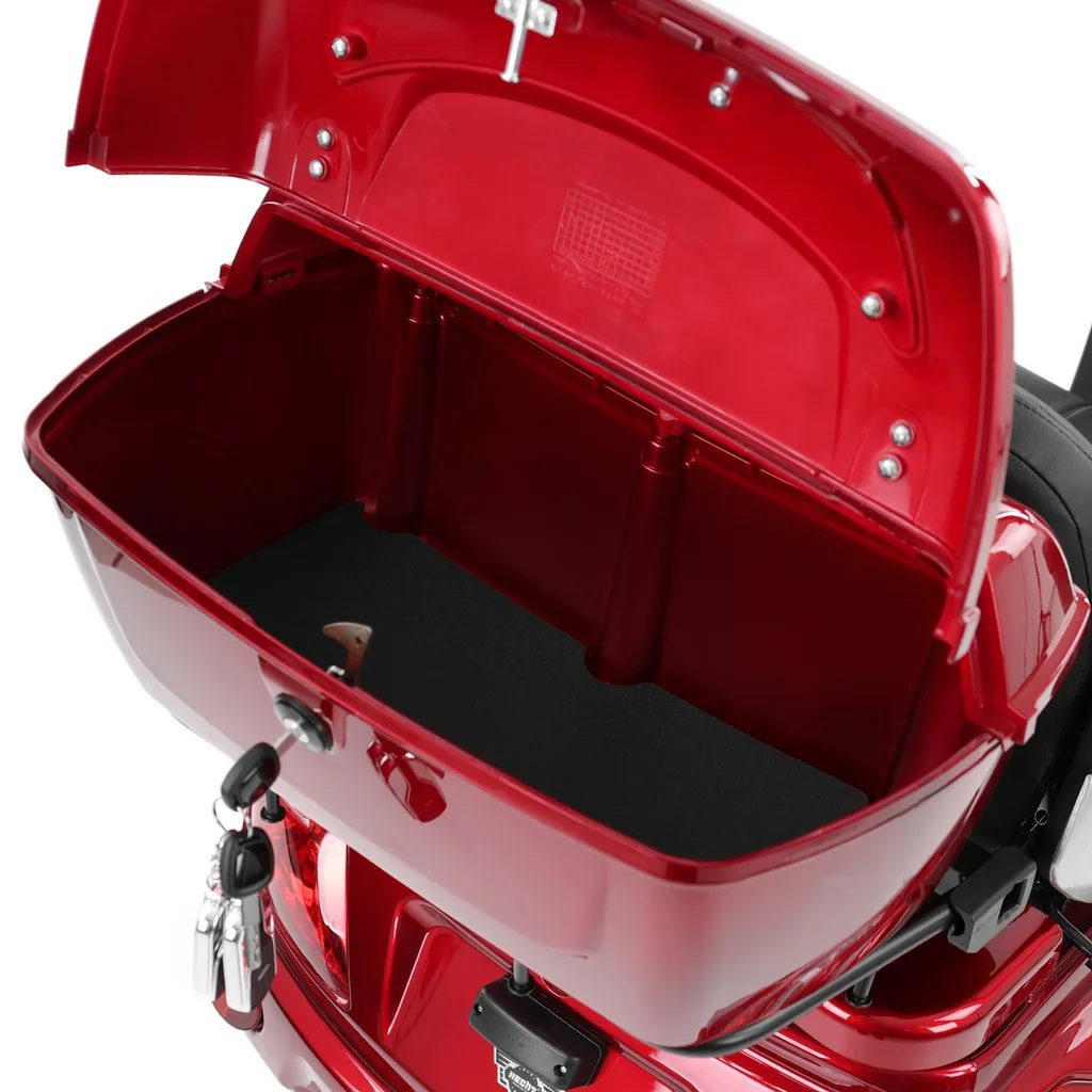 Skuter inwalidzki elektryczny - trójkołowy dla seniorów i osób o ograniczonej sprawności ruchowej. Silnik 1000 W, akumulator 60 V / 20 Ah. Maks. prędkość 25 km/h, zasięg do 41 km. Pełny opis ▼