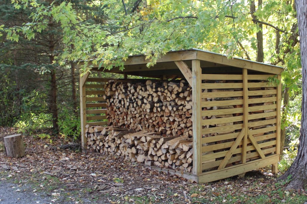 - Układaj rozłupane polana stroną do dołu – woda może wtedy łatwo odpłynąć.