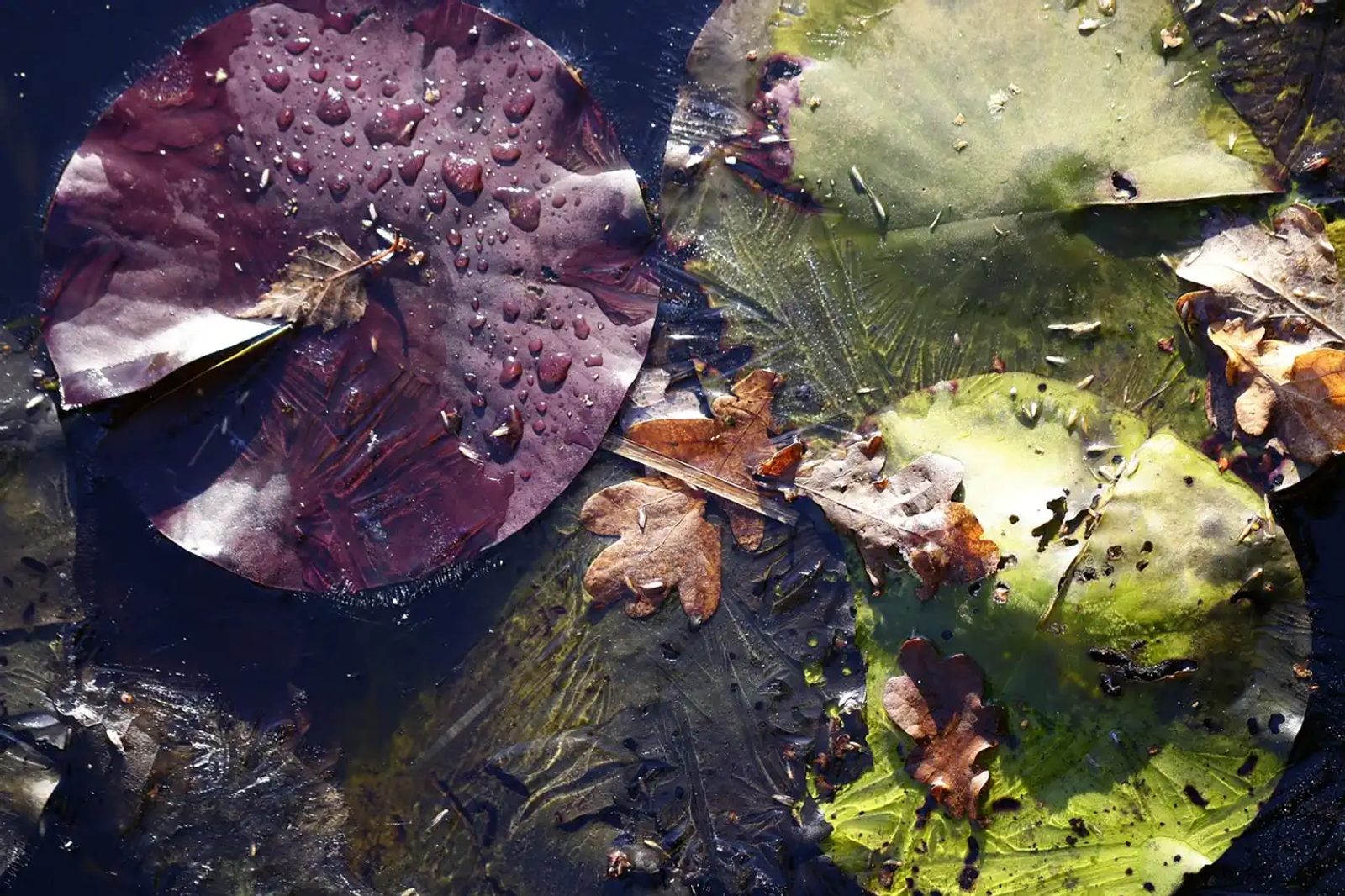 Pierwszym krokiem jest usunięcie opadłych liści i innych zanieczyszczeń organicznych. Jeśli opadną na dno i zaczną się rozkładać, w stawie utworzą się gazy, które mogą zaszkodzić roślinom i rybom. Dlatego należy na bieżąco usuwać liście, przy mniejszych stawach można częściowo pomóc przykrywając je siatką na zimę.