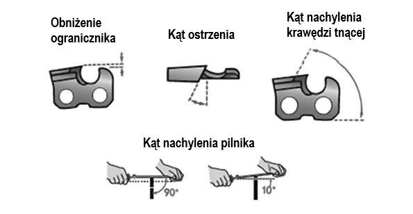Najprostszym sposobem jest zlecenie ostrzenia łańcucha profesjonaliście. Jeśli chcesz wziąć to w swoje ręce, najważniejszą rzeczą jest użycie pilnika o odpowiedniej średnicy i zachowanie odpowiedniego kąta ostrzenia oraz kąta nachylenia pilnika podczas ostrzenia. Średnica pilnika, kąt i czas szlifowania zależy od konkretnego typu łańcucha.