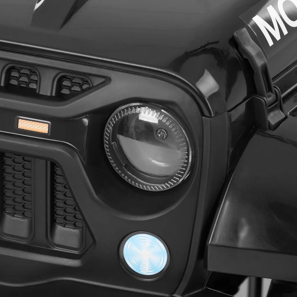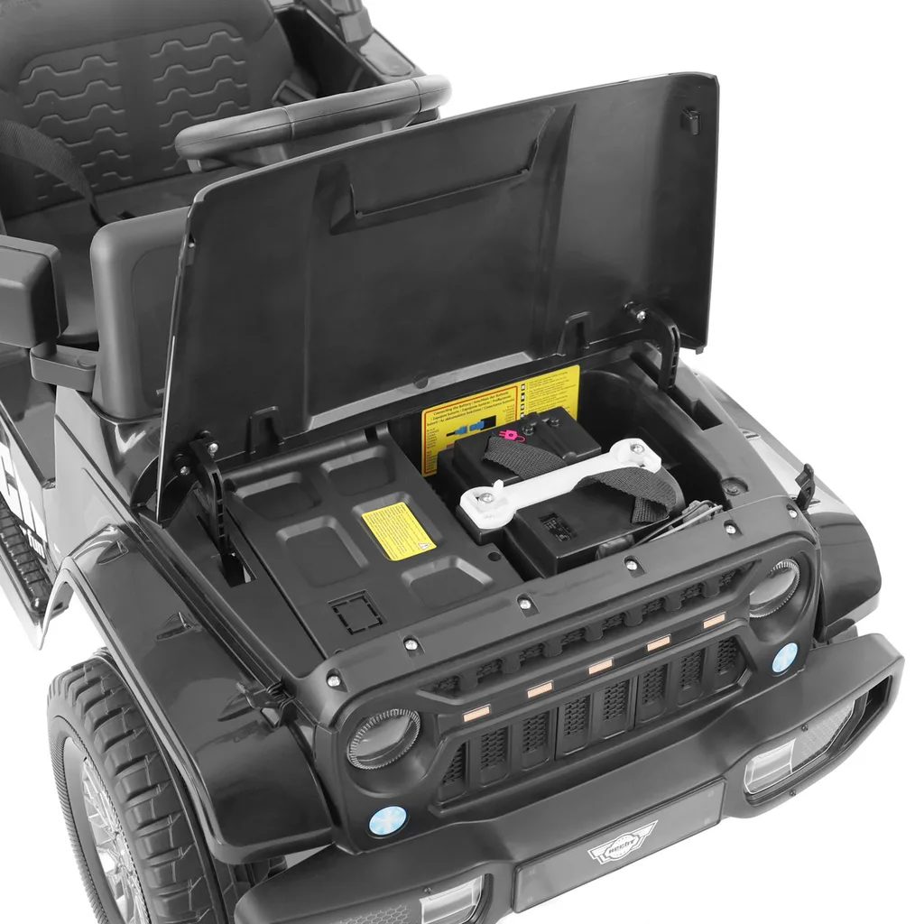 Pojazd wyposażony jest w dwa silniki o mocy 15 W i akumulator 12 V o pojemności 7 Ah, co pozwala na jazdę z prędkością do 5 km/h. Dzięki zdalnemu sterowaniu rodzice mogą w każdej chwili interweniować i zdalnie sterować pojazdem. Świetne akcesoria, takie jak bieg wsteczny, wejście audio i realistyczne detale, czynią ten samochodzik idealnym prezentem.