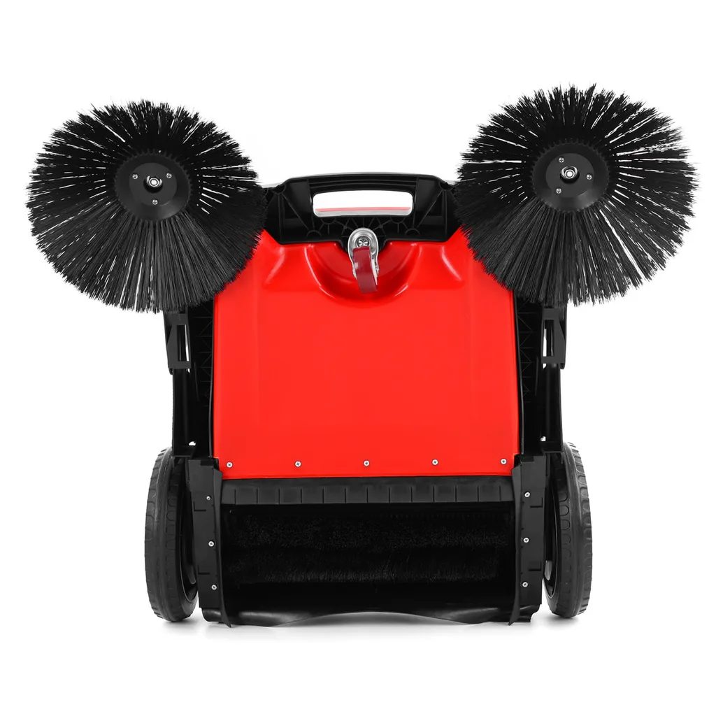 Zamiatarka mechaniczna z dwiema szczotkami. Szerokość robocza 105 cm, zbieracz zanieczyszczeń 48 l.