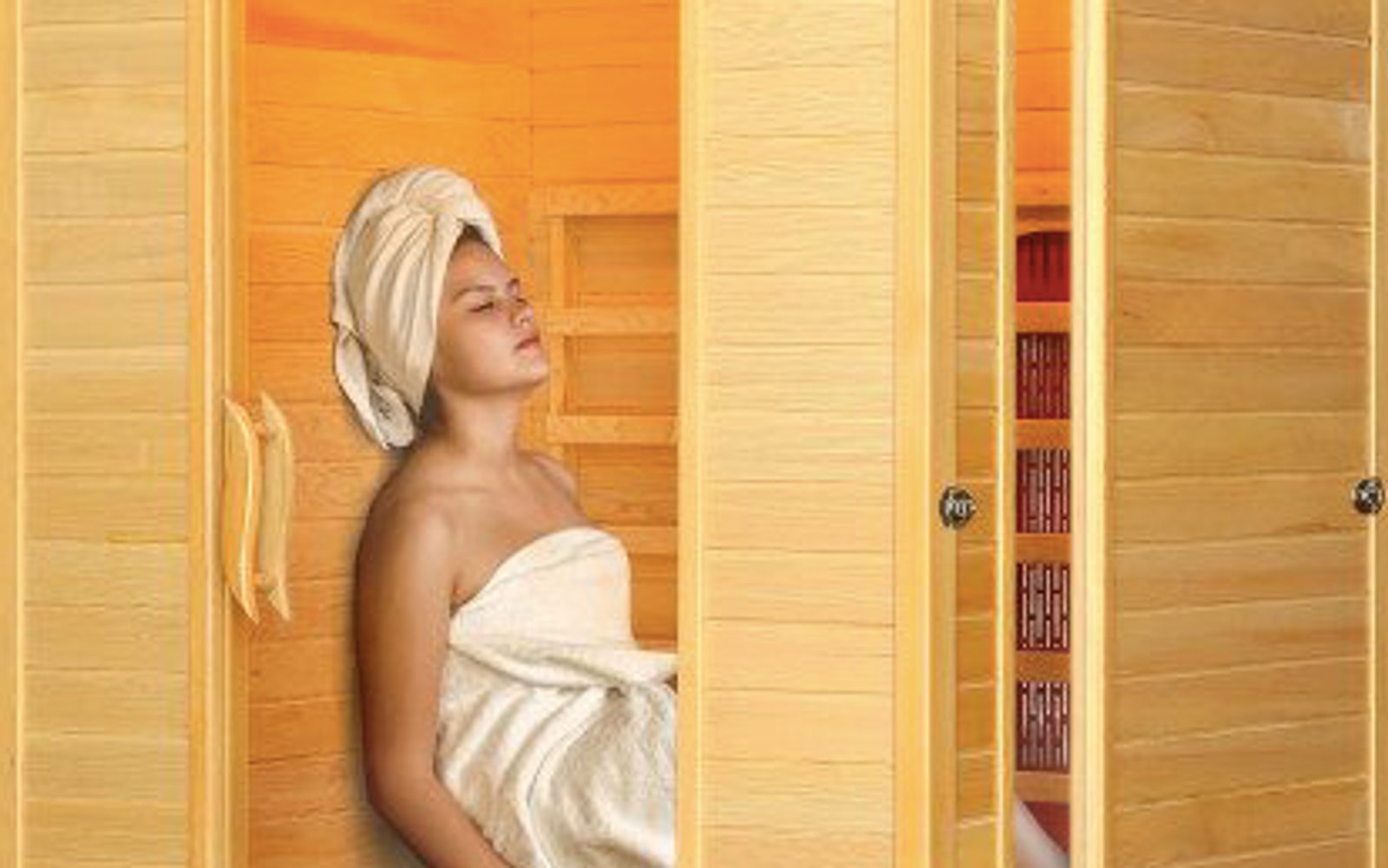 Sauna na podczerwień dla dwóch osób. Moc pobierana 2080 W, 5 ceramicznych elementów grzewczych. Temperatura 30 - 60 °C. Wbudowany odtwarzacz MP3 z radiem FM. Wymiary 100 x 120 x 190 cm.