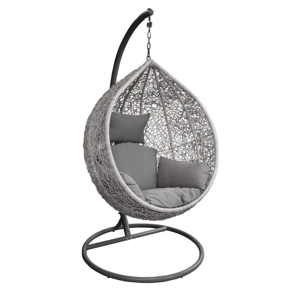 Stylowy fotel bujany. Fotel wykonany ze stalowych rur ze sztucznym rattanem.