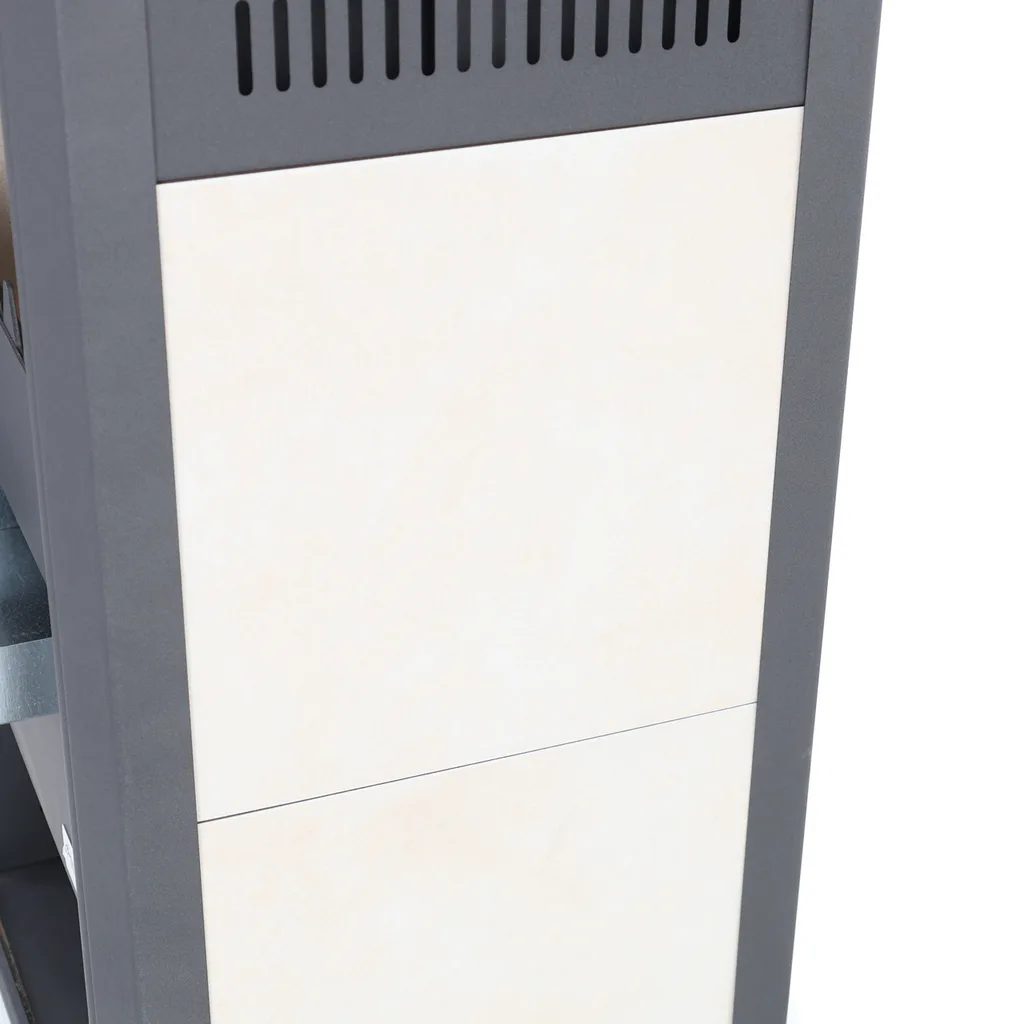 Piec stalowy z drzwiami szklanymi i mocą 9 - 10 kW. Przewód kominowy: Ø 120 mm. Zalecane paliwo: drewno, brykiety drzewne. Wykończenie ceramiczne. Wyprodukowano w Europie. Pełny opis ▼