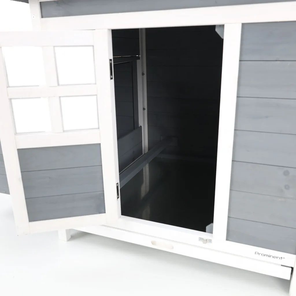 Dach pokryty papą z możliwością otwierania. Możliwość zamykania na noc. Materiał: trwałe drewno jodłowe. Rozmiar 195 x 73 x 98 cm.