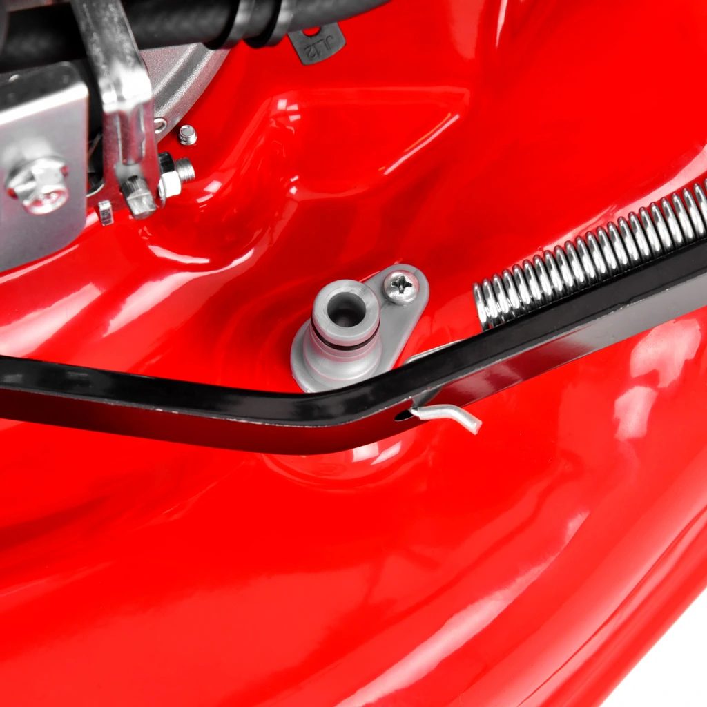 - 7-calowe przednie i 11-calowe tylne koła poprawiają prowadzenie podczas koszenia i są raczej wyjątkiem w tej kategorii (zawierają łożyska kulowe)