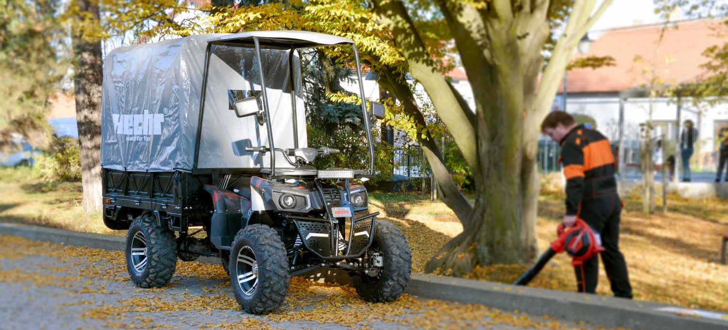 Z drugiej strony, jeśli od czasu do czasu musisz wyjechać quadem poza teren posesji – na przykład do sklepu, do innej części gospodarstwa lub na przejażdżkę po wiosce – docenisz HECHT CARGO. Model ten nie tylko oferuje zastosowanie w pracy, ale również posiada homologację do użytku na drogach publicznych, dzięki czemu możesz go używać bez obaw na drogach publicznych.